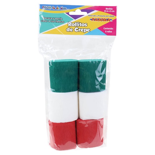 Rollitos de papel Crepé 6pz Medidas: 10m x 5cm Varios modelos.